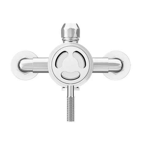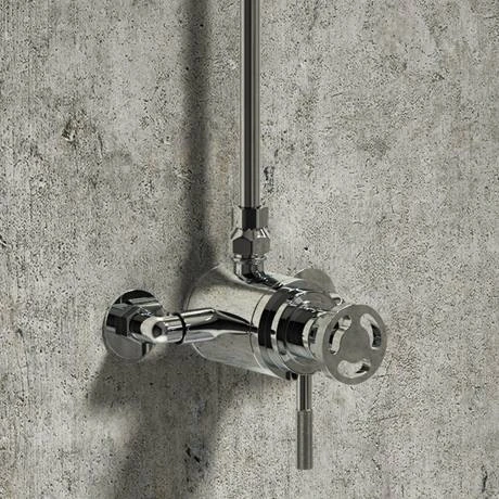 The Arezzo polished chrome industrial style dual exposed shower valve provides a stripped-down aesthetic with round knurled textured controls, perfect for creating an eye catching industrial look in your bathroom. Featuring easy to operate controls – the front control adjusts the temperature and back lever control turns the water on and off. Plated in chrome which is highly resistant to corrosion, this ‘dual’ shower valve is perfect for installing in a exposed arrangement, linked with one of our luxury riser shower kits.Â