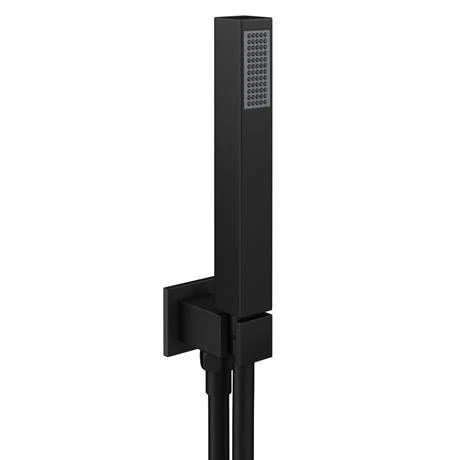 (1) Square Matt Black Outlet Elbow with Parking Bracket, Flex & Handset