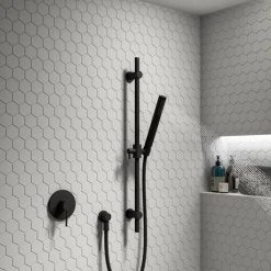 The sleek stylish handle controls temperature and flow. Simply lift lever to introduce flow, adjust left or right to set temperature. Operates one bath / shower accessory – bath spout, slide rail kit or shower head.