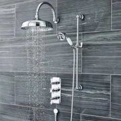 Beautifully crafted and inspired by Victorian and Edwardian designs, the Bayswater Slider Rail Kit with White Ceramic Handset perfectly complements Bayswater’s shower valves. It features an adjustable handset holder and white ceramic shower handset with hose. Made from high grade brass with a durable chrome finish.
