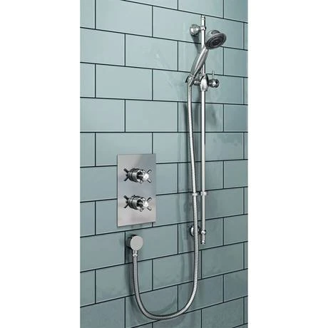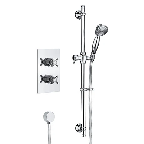 The 1901 traditional shower pack offers thermostatic showering with two easy to operate controls, one operates flow control whilst the other allows temperature selection. The 1901 traditional shower pack adds a touch of sophistication and elegance in any bathroom. Consists of a traditional 1901 recessed shower valve and adjustable riser kit.