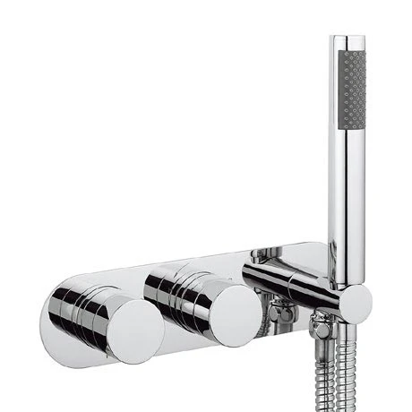 This Central Wall Mounted Thermostatic Shower Valve with Handset is fully integrated with two outlet valves and can be smartly operated for bath filling with a handset, or double showering with an overhead shower and handset.