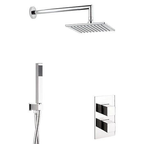 This Water Square complete shower bundle from Crosswater will transform any contemporary bathroom with its sleek and trendy design. The bundle consists of a 2 outlet shower valve, 200mm shower head and arm, wall outlet elbow, shower handset and hose. The thermostatic shower valve features an in built anti-scald device to protect you and your family. All Crosswater thermostatic showers use only the highest quality ceramic discs which deliver precise temperature and flow control, even after years of prolonged use.