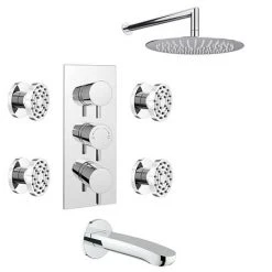 The minimalist Cruze shower package brings substantial elegance to the modern bathroom range, features a stylish concealed thermostatic triple shower valve which offers thermostatic showering via three easy-to-operate controls. Operates two shower accessories separately or simultaneously and diverts to a third option: fixed head & body jets with option to divert to free flow bath filler.