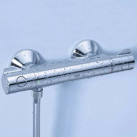 This Grohtherm 800 Thermostatic Shower Mixer is safe and ergonomic and great value for money. It benefits from GROHE TurboStat® technology, your water temperature stays constant, regardless of any fluctuations in your water supply or water pressure. The easy to grip controls can always be adjusted effortlessly, even with soapy hands. The integrated SafeStop Plus system comes with a two-stage temperature limit. The first limit is preset at 38°C. If desired, temperatures of up to 43°C can be selected upon deactivating the SafeStop button. With GROHE EcoJoy® technology, you can indulge in a perfectly comfortable shower while reducing water consumption.