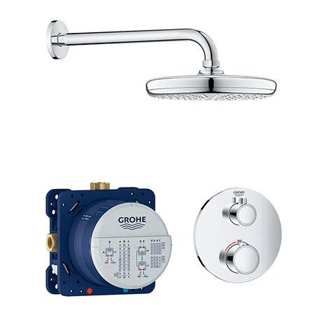 The Grohtherm Perfect Shower Set with Tempesta 210 is sleek, stylish and user friendly. Packed with innovative features, this complete shower set will enhance your bathroom. The Tempesta head shower will help you relax with it’s rain spray and is equipped with a GROHE EcoJoy 9,5 l/m. flow limiter. GROHE TurboStat technology prevents any unpleasant temperature fluctuations. It’s family-friendly too as the GROHE SafeStop override button is set at 38°C so scalding is a thing of the past. The hardwearing, lustrous GROHE StarLight chrome finish will look pristine for years to come.