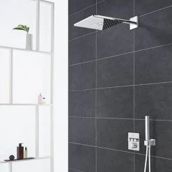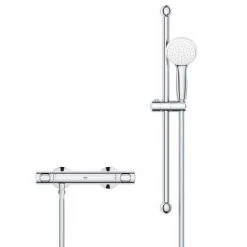 The New Tempesta Cosmopolitan 160 Thermostatic Shower System is the perfect choice for the modern bathroom. It boasts a 160mm head shower that can swivel to create the perfect angle while the shower handset features two invigorating spray patterns. The thermostat’s GROHE TurboStat® technology means you can take a luxurious shower secure in the knowledge the water will stay at the pre-selected temperature even if the water pressure changes.