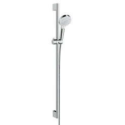 This Crometta Vario EcoSmart 2 Spray Shower Slider Rail Kit is sturdy, easy to clean and comes with a smooth running shower slider. It allows you to fix the shower head to the perfect height – whatever your size, or showering position. The shower slider can be conveniently angled so it can be adjusted to your specific needs. This EcoSmart model features an intelligent flow limiter that reduces water consumption by up to 60%, as well as energy consumption. It’s Rain spray is perfect for rinsing shampoo out of your hair; IntenseRain is perfect for setting yourself up for the day washing morning tiredness down the drain. The QuickClean rub clean nubs loosens any limescale deposits making sure your hand shower looks beautiful, and stays working for longer. Consists of handshower, 90cm slider rail and 1.6m shower hose.