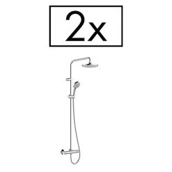 A pack of 2 x complete showers for large or commercial projects. The Vernis Blend Showerpipe 200 Thermostatic Shower Mixer combines a hand and overhead shower, as well as a thermostat, into one product. It features a large 205mm shower head and shower handset with a height-adjustable shower holder that can also be turned and tilted. The self-locking slider can be operated with one hand. It’s Rain spray is perfect for rinsing shampoo out of your hair while the QuickClean rub clean nubs loosens any limescale deposits making sure your hand shower looks beautiful, and stays working for longer.Â