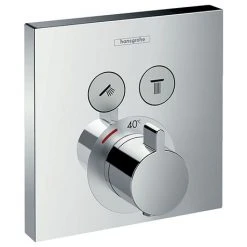 The ShowerSelect Thermostatic Mixer offers an economical way of adding designer elegance to your bathroom. Designed to run 2 outlets, it incorporates a thermostatic start/stop cartridge and a maximum temperature stop which can be adjusted on installation. Made from high quality materials and beautifully finished in chrome.