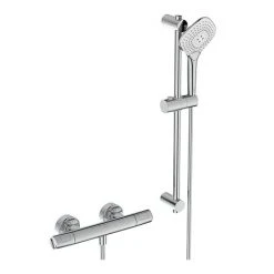 The Ceratherm T100 exposed thermostatic shower mixer pack is perfect for homes that like to combine style with substance. Complimenting sleek and contemporary design with features such as 3 function diamond 125mm handspray. Whatever your preferred temperature, Ceratherm T100 stays cool to the touch. It uses Cool Body technology to ensure the hot water flow is always surrounded by cold water, protecting users of all ages from scalding, and offering total comfort of use.