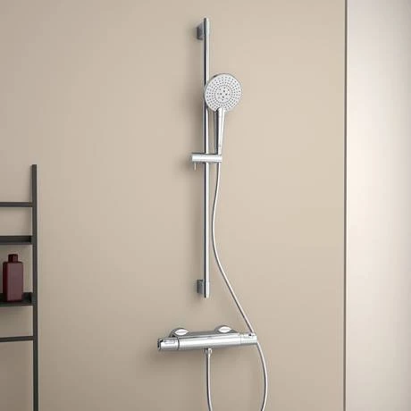 This Idealrain Evo Jet shower kit includes a 3 function diamond Ø125mm handspray, featuring 3 shower modes (including an invigorating Drop Jet) all selectable via a single push button, 900mm slide rail and 1.75m IdealFlex hose. Suitable for high pressure installations.