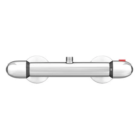 The modern Juno round top outlet thermostatic shower bar valve offers thermostatic showering with two easy to operate controls, one operates flow control whilst the other allows temperature selection. Features a pre-set maximum temperature and comes with decorative shrouds/covers to protect and conceal tile/wall edge, giving the installation a neat finished appearance. Designed to be used with a rigid riser kit (not included).Â