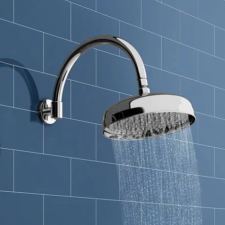 The classic Lancaster concealed thermostatic shower valve with 8 inch shower head and round curved arm offers thermostatic showering with two easy to operate controls, one operates flow control whilst the other allows temperature selection. Shower valve has the added safety benefit of a built in anti-scald device should the cold water supply fail. The Lancaster dual concealed thermostatic shower package adds a touch of sophistication and style in any bathroom.