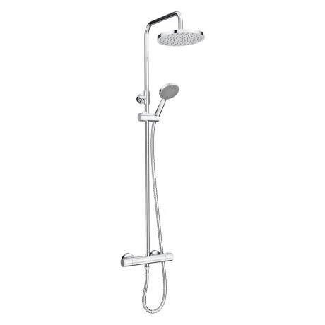 Featuring clean lines and a gleaming chrome finish, this refined Madrid Luxury Round Thermostatic Shower will make a versatile addition to contemporary spaces. A thermostatic mixing valve with built in diverter allows you to easily switch between the large and luxurious rainfall shower head and practical round paddle handset. Made from robust brass with the latest ceramic disc technology, this thermostatic mixer shower will meet your needs for years to come. Flow and temperature are controlled by the sleek bar valve, while a telescopic riser rail means you can adjust the handset to your chosen height with ease.