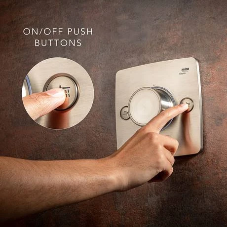 Ultra-sleek and fully-concealed, the Mira Evoco Dual Outlet Brushed Nickel Thermostatic Mixer Shower creates a refined, sophisticated look and feel. Enjoy style as clean and luxurious as your experience – featuring a fully-concealed shower mixer and indulgent double spray heads. With innovative Mira HydroGlo technology, illuminating at the perfect temperature.
