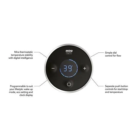 The Mira Platinum has everything for a digital shower with an innovative and sleek design. The Mira 360 showerhead features a flip action with 4 unique spray patterns. Use the wireless controller to adjust the temperature and flow and keep track of the time whilst you shower with the digital clock display. This model is suitable for high pressure systems only and comes with a 5 year guarantee from Mira.