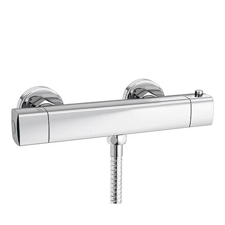 This stunning Montreal bar shower valve is part of our range of contemporary collection of showers and valves. This modern bar valve features modern soft curved styling with a chrome finish and has been constructed from solid brass. Features a pre-set maximum temperature that ensures that showering is safe and convenient. Supplied with decorative shrouds/covers to protect and conceal tile/wall edge, giving the installation a neat finished appearance. Pair the with a modern slider rail kit for a clean, and modern shower look.Â