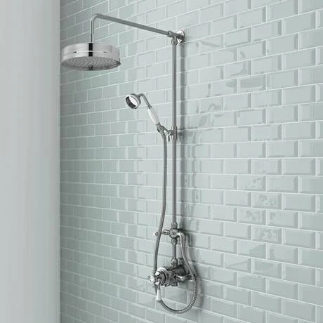 A classic Luxury Rigid Riser Kit with Exposed shower valve. Complete the look of your bathroom with a Designer rigid riser shower kit. It has a built-in diverter so you can switch between the fixed head or hand held shower. All kits comprise of exposed pipe work including a sliding rail, shower hose and shower head. Combined with the supplied exposed dual shower valve this rigid riser shower kit will enhance the appearance of any bathroom.