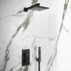 Arezzo Square Modern Twin Concealed Shower Valve with Diverter – Matt Black