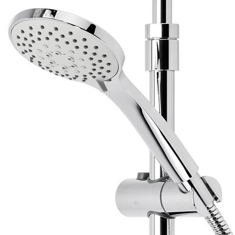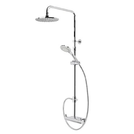 The Storm Exposed Dual Function Shower System features a useful shelf for all your bathroom toiletries. The shower also boasts an automatic shut down if the cold water pressure should suddenly fail and is limescale resistant. Package includes a thermostatic bar valve with accessory shelf, a bar valve quick fixing kit, height adjustable rigid riser rail with diverter, 250mm shower head, Air-drive 5 function shower handset and an easy clean PVC shower hose. Air-drive handsets are water saving creating an aerated bubble spray that uses less water.